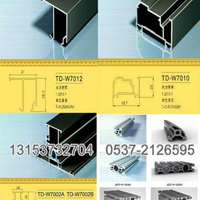 公司主營(yíng)15*30 16*40 20*20 20*40 20*80 30*30 30*60 30*90 30*150 40*40 40*40R 40*60 40*80 45*45 45*45L 45*45R 45*60 45*90 50*50 50*100 60*60 60*120 80*80 80*120 90*90 100*100等歐洲標(biāo)準(zhǔn)工業(yè)鋁合金型材/工業(yè)鋁型材/工業(yè)鋁材。本公司竭力為客戶提供更**的服務(wù),我們忠誠(chéng)的期待與廣大客戶攜手合作!歡迎廣大新老客戶來(lái)電洽談,特殊規(guī)格可訂貨!