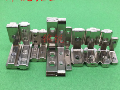 用于兩型材的直角連接,安裝時將其兩端分別插入型材槽坑內(nèi),將緊定螺釘鎖緊,根據(jù)型材的槽寬與連接方式請選用不同的角槽連接件。