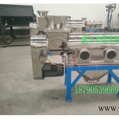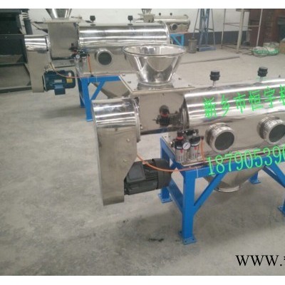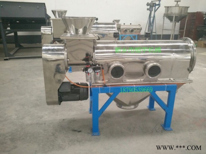 圓筒臥式氣流篩,恒宇氣流篩,采用圓筒式,進(jìn)料口采用高速旋轉(zhuǎn)的螺旋葉片,適宜篩分易漂浮,比重輕的精細(xì)粉體,受離心力和旋風(fēng)推進(jìn)力,利用氣流的強(qiáng)勁推進(jìn)力,使微粉粒通過氣流透過篩網(wǎng)。由于強(qiáng)大氣流沖擊,使粉體不易堵塞篩網(wǎng),產(chǎn)量大,效率高。篩分細(xì)粉從下面的出料口排出,粗料從氣流篩尾部出料口排出。臥式氣流篩是一款對微細(xì)粉進(jìn)行有網(wǎng)篩分的高精度篩分設(shè)備。80-500目內(nèi)的粉狀物料很好的連續(xù)篩分,利用粉料微粒質(zhì)量小而輕、易漂浮、流動性好的特點,將其充分?jǐn)U散到氣流中,粉料不再團(tuán)聚,而是以單個微粒依次隨氣流透過篩網(wǎng),因此氣流篩的產(chǎn)量大、效率高、不粘網(wǎng)、不堵網(wǎng)孔、細(xì)度**。